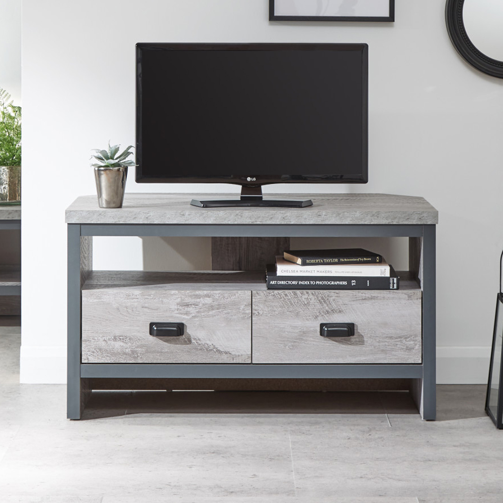 Balcombe Wooden Corner TV Stand With 2 Drawers In Grey