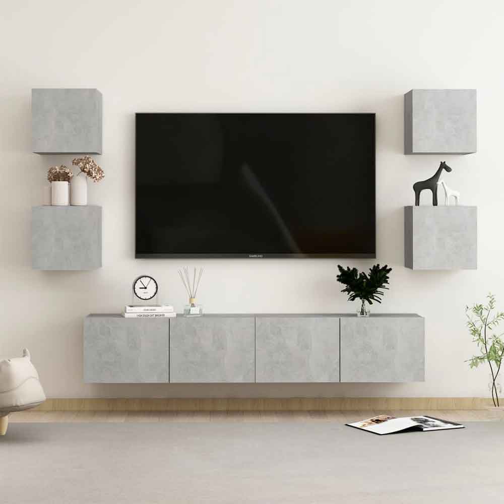 Elevate your living room with the Furniture in Fashion Beaverton 160cm Wooden 6 Piece Entertainment Unit in Concrete Grey, a spacious and stylish solution for all your entertainment and storage needs. Featuring a warm Concrete Grey finish, this set brings natural charm and sophistication to any modern or contemporary interior. Its large size ensures ample space for your TV, media devices, and decorative accessories, making it the perfect centrepiece for your living space. Crafted from durable wooden materials, the Beaverton 6 Piece Entertainment Unit is designed for longevity and practicality. The set includes a central TV stand and five matching side units, offering a combination of open shelving and closed compartments for versatile storage. Perfect for organizing electronics, books, or decor items, this unit blends functionality with timeless design. Enhance both the style and functionality of your home with the Furniture in Fashion Beaverton 160cm Wooden 6 Piece Entertainment Unit in Concrete Grey, combining elegance, durability, and modern practicality. FEATURES : Material : Engineered Wood Finish : Concrete Grey Set Include : 2 x Wall TV Cabinet (L), 4 x Wall TV Cabinet (S) These wall mounted TV cabinets feature a sleek and stylish design, making them a decorative and practical addition to your decor Stable and durable material : Engineered wood is a durable and stable material with a smooth surface that is resistant to moisture, warping, and splitting, making it a reliable choice for a variety of projects Ample storage space : This TV stand offers handy storage space for keeping your various daily essentials well-organised and within easy reach Convenient assemble : You can install the door on the left or right side according to your convenience Modern style : This media cabinet adds a modern style to your existing interior The modern design featuring clean lines, minimalistic looks, and natural light as a part of the interior design style