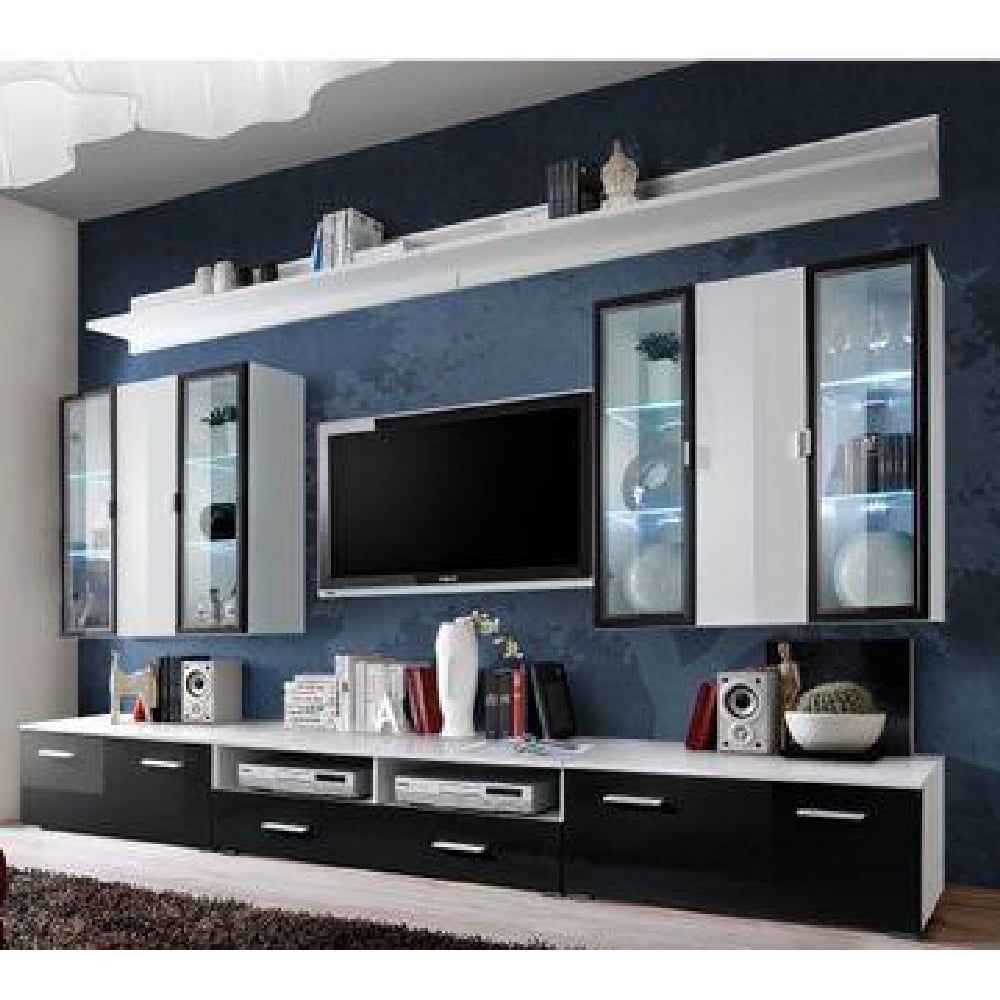 Ipswich High Gloss Entertainment Unit In Black And White With LED